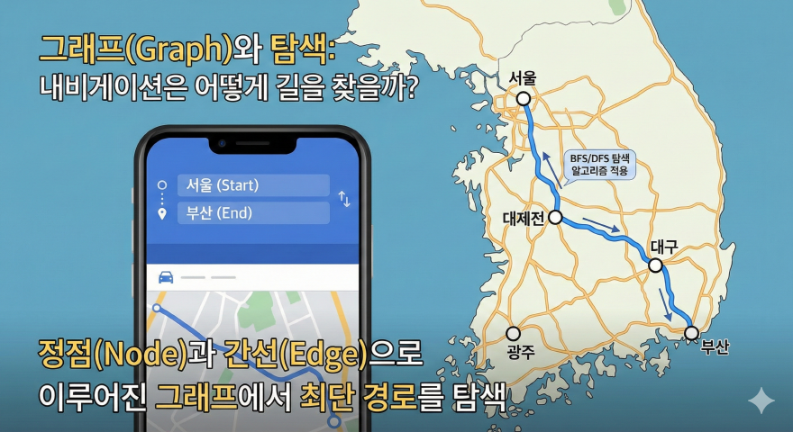 - 내비게이션(길 찾기): 교차로를 정점, 도로를 간선으로 보고 BFS나 다익스트라 알고리즘을 돌려 최단 시간 경로를 계산합니다.