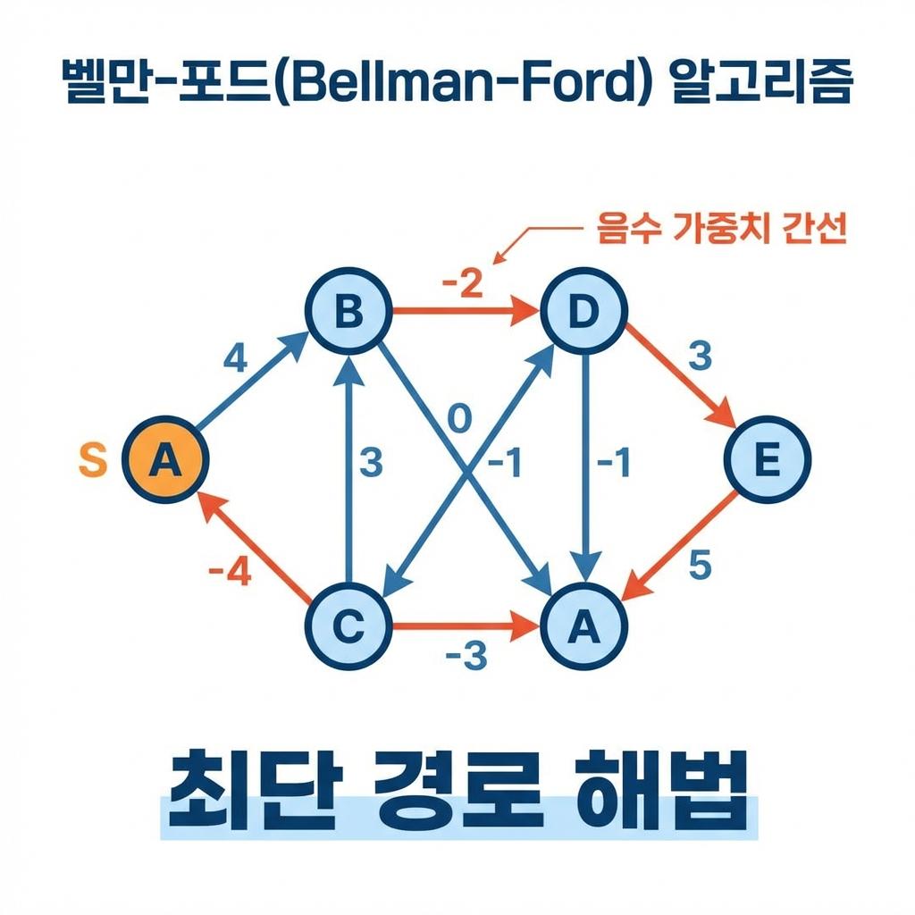우리는 앞서 다익스트라 알고리즘이 음수 가중치 앞에서 무력해지는 모습을 보았습니다. 하지만 현실의 세계에는 비용이 절감되거나 에너지가 충전되는 등 '음수 가중치'를 고려해야 하는 특수한 상황이 분명 존재합니다. 이러한 한계를 극복하고 그래프 내의 모든 최단 경로를 찾아내는 우직하고 강력한 해법이 바로 벨만-포드(Bellman-Ford) 알고리즘입니다. 본 포스팅에서는 벨만-포드가 어떻게 음수 가중치를 처리하며, 특히 무한 루프를 유발하는 '음수 사이클'을 어떻게 감지하는지 그 정교한 매커니즘을 파헤쳐 보겠습니다.